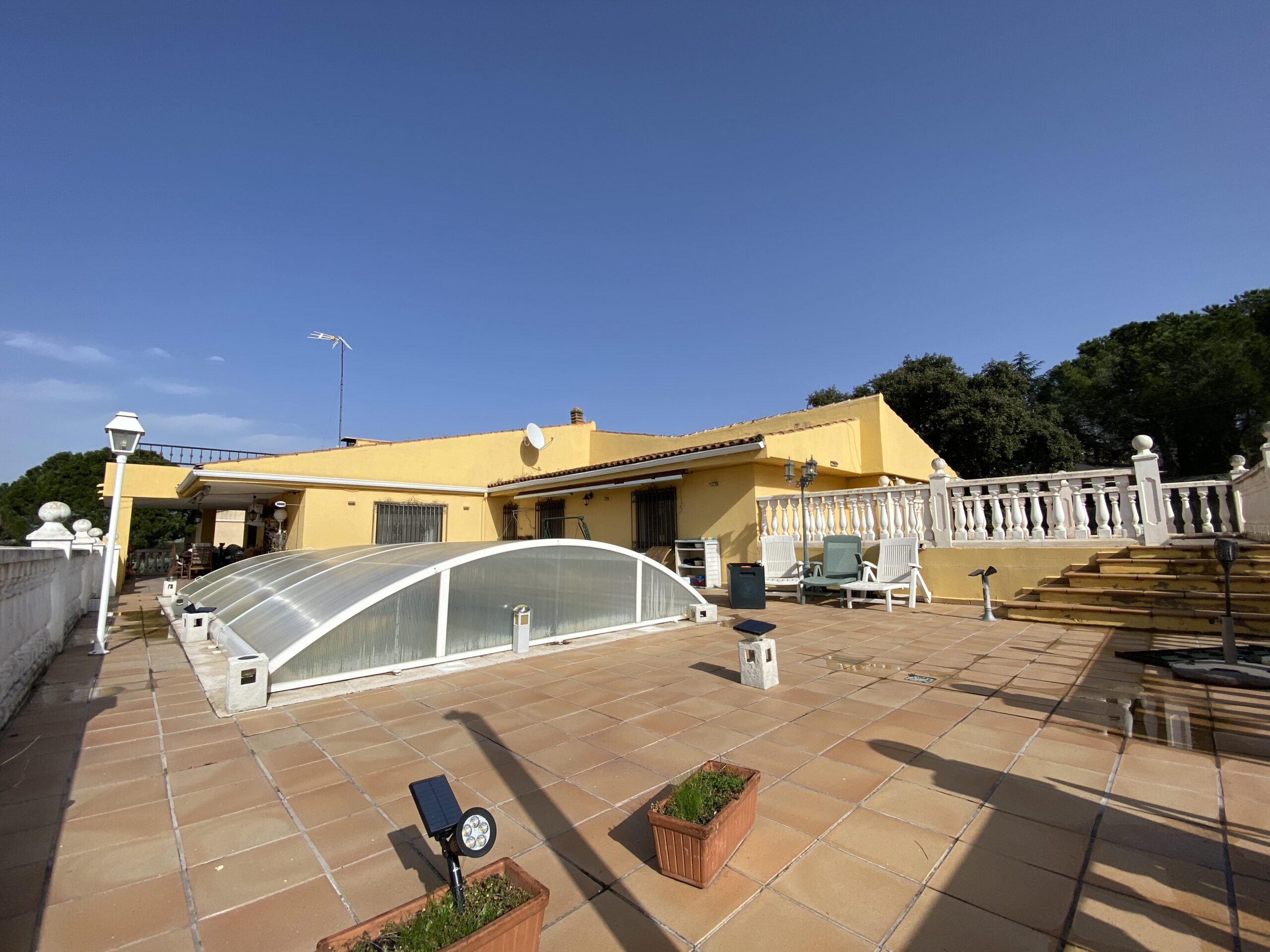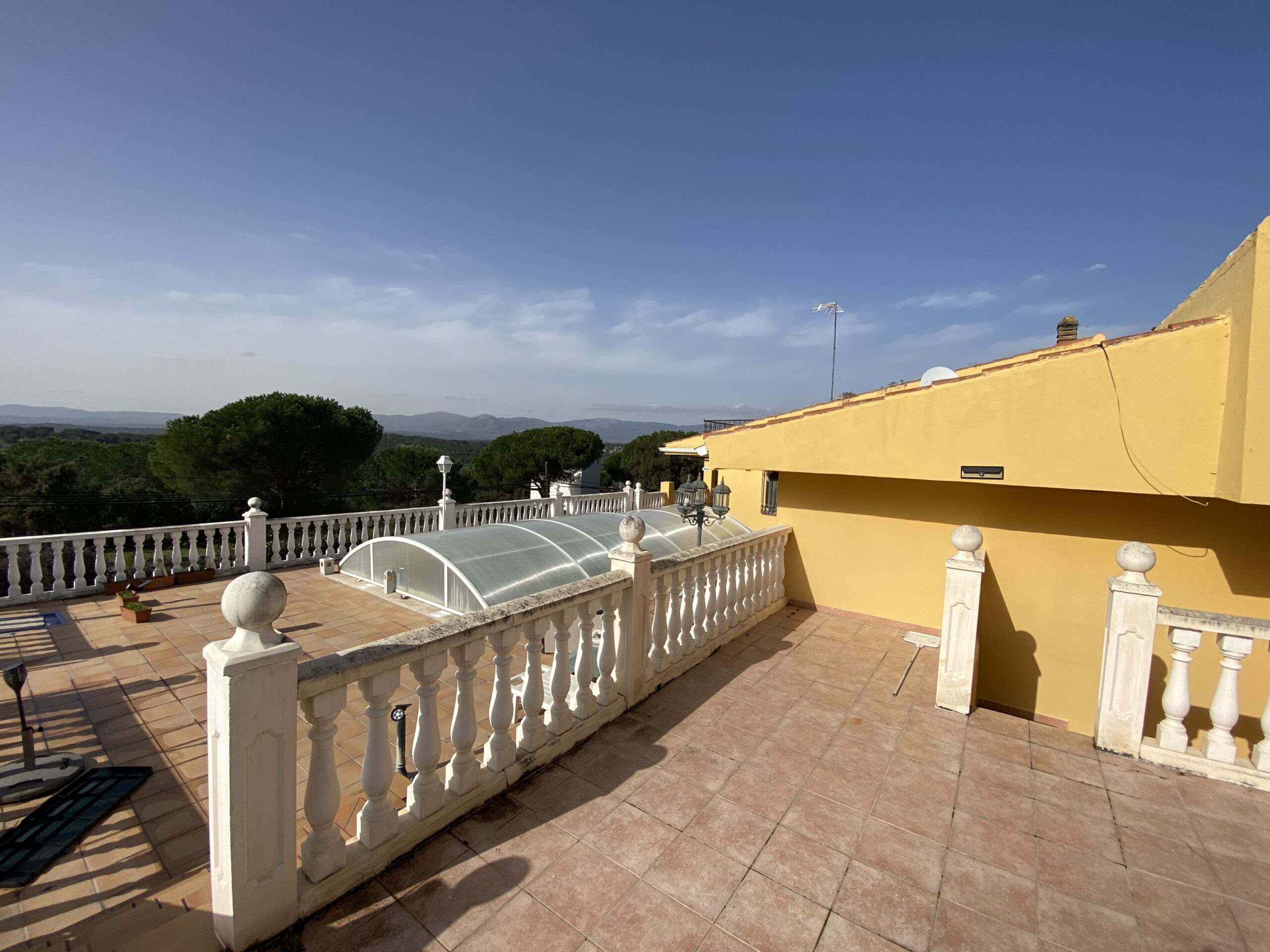 Se vende chalet individual de 450m2 construidos en parcela de 1900m2 y extraordinarias vistas. La casa tiene 2 plantas y dispone de 6 dormitorios y 3 baños. La propiedad tiene un gran porche frontal y 4 terrazas, así como zona ajardinada y piscina cubierta. La cocina da acceso a un office y gran salón con chimenea.