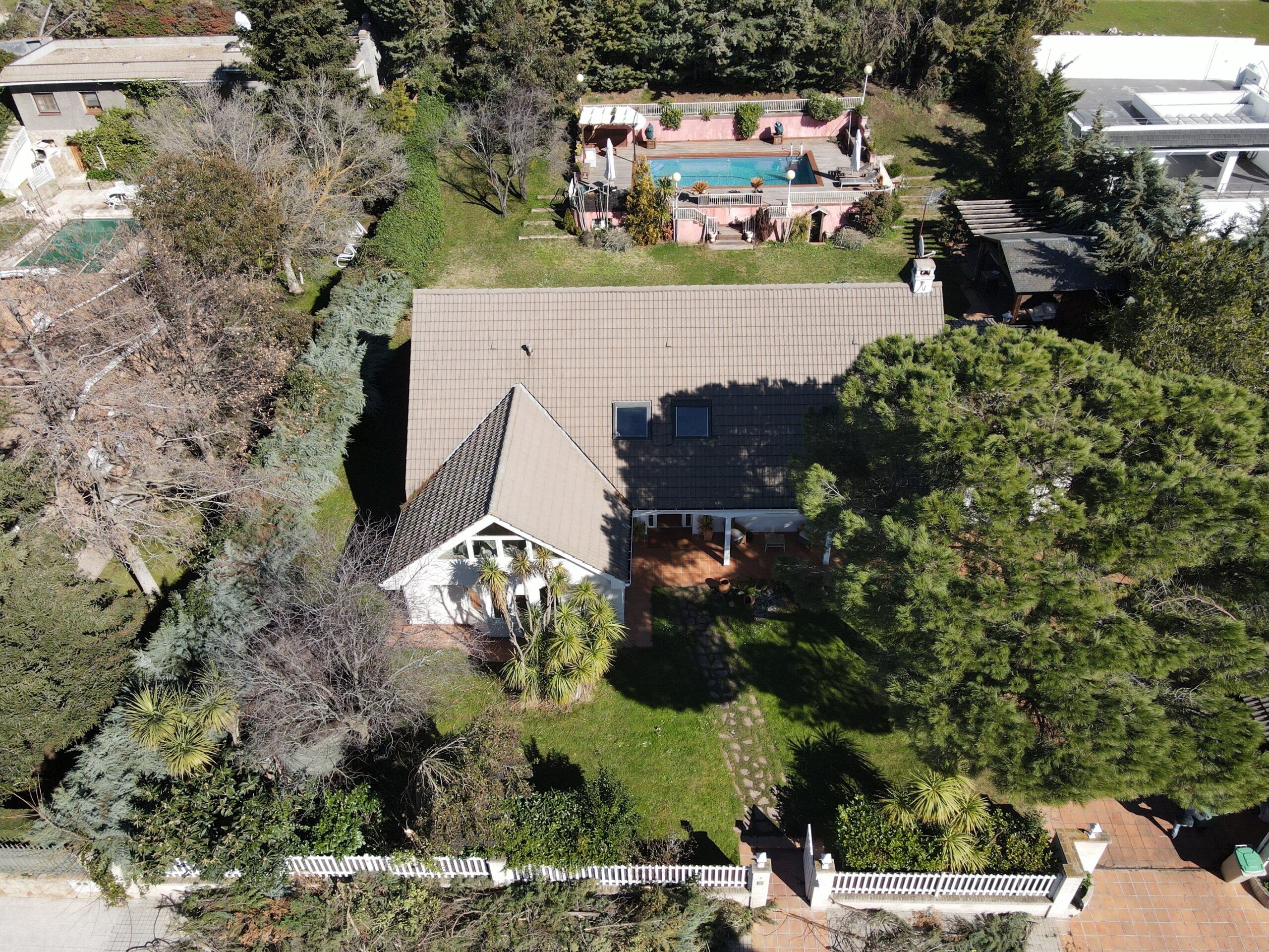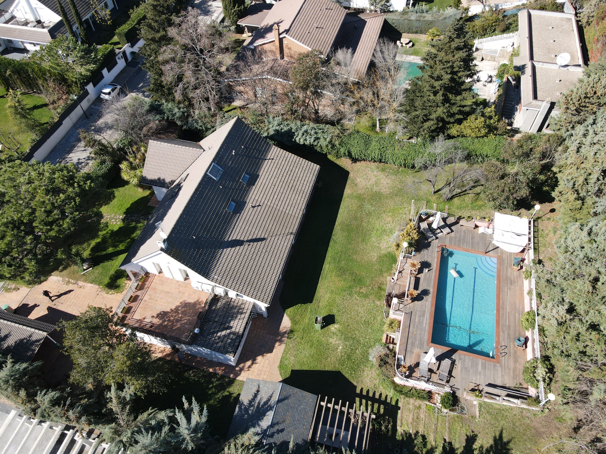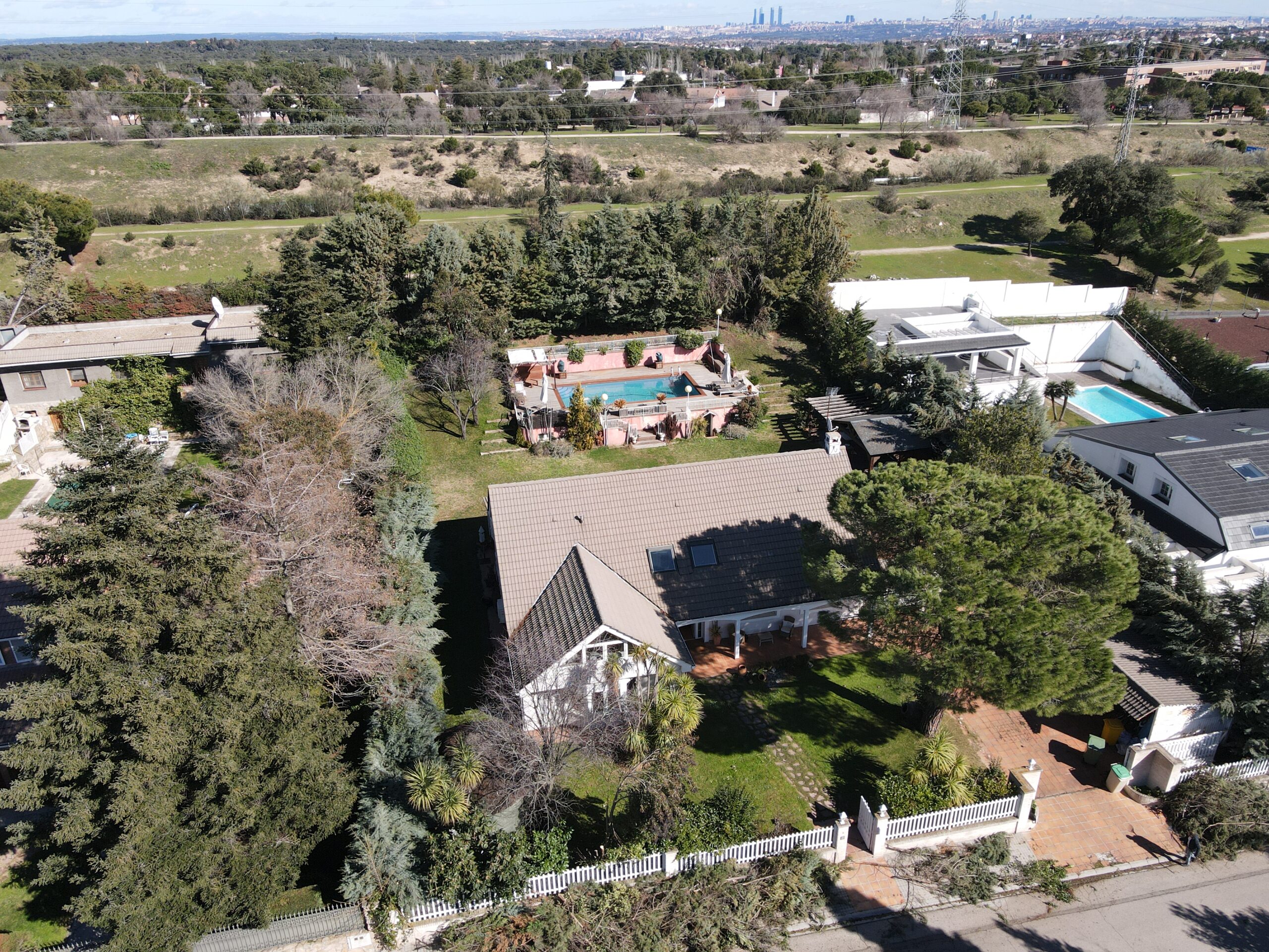 Esta fantástica vivienda se ubica en La urbanización Monteclaro, que es un complejo residencial de lujo situado entre los términos municipales de Pozuelo de Alarcón y Majadahonda, al oeste de Madrid. La urbanización se compone de 667 viviendas unifamiliares, con amplias parcelas verdes y zonas ajardinadas, además de un club social “Club Monteclaro” que cuenta con instalaciones deportivas como pistas de tenis, paddle, futbol, piscina olímpica y así como piscina infantil y preciosos jardines, todas ellas exclusivas para residentes o con invitación. Además de estas instalaciones el club ofrece una desarrollada vida social con conferencias, cursos de baile, celebraciones (navidad, carnavales, bodas y bautizos)