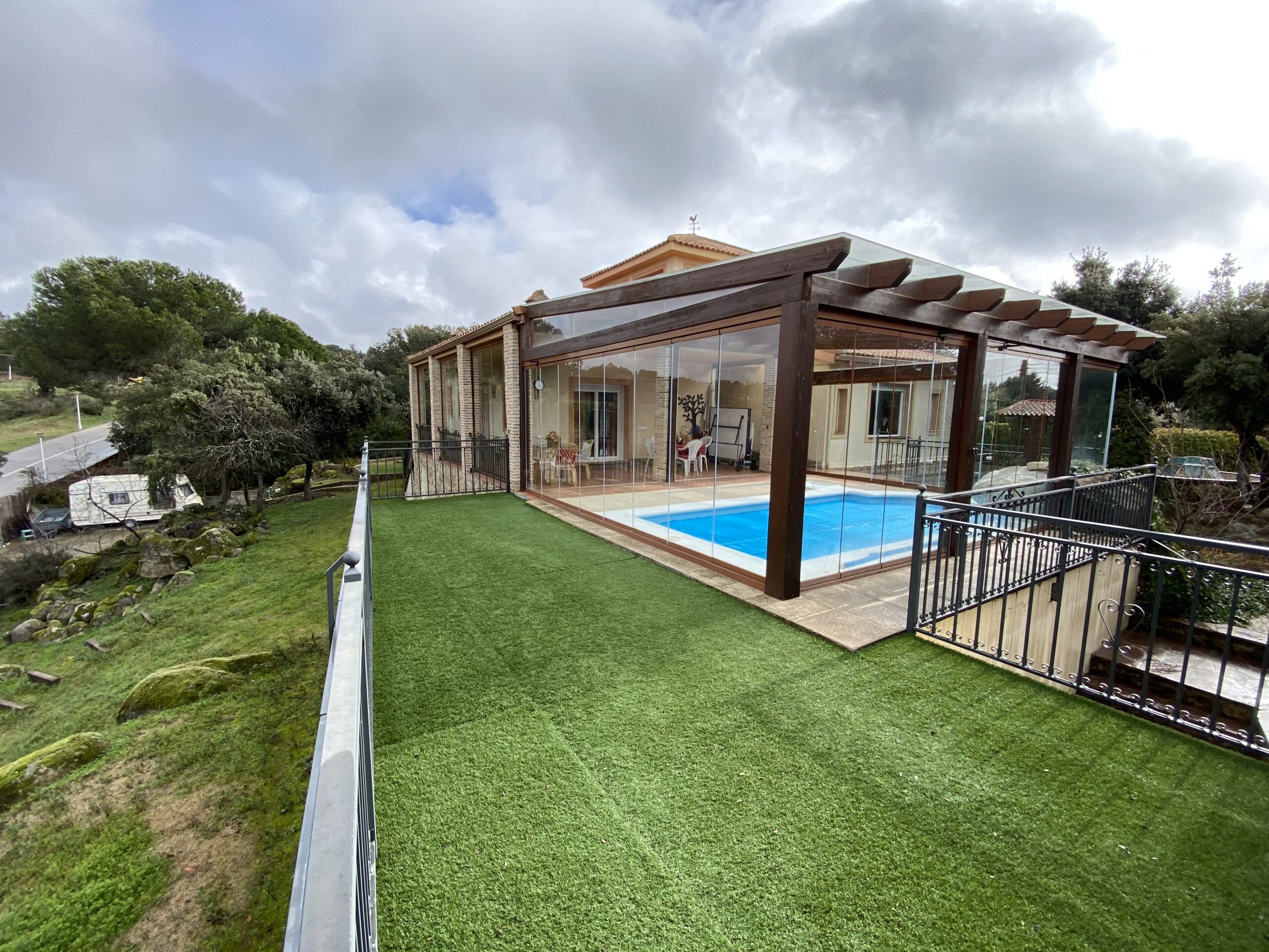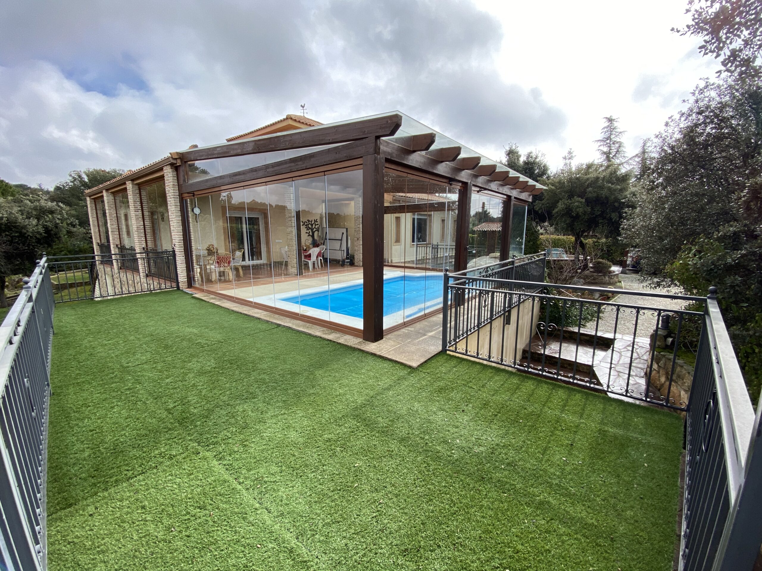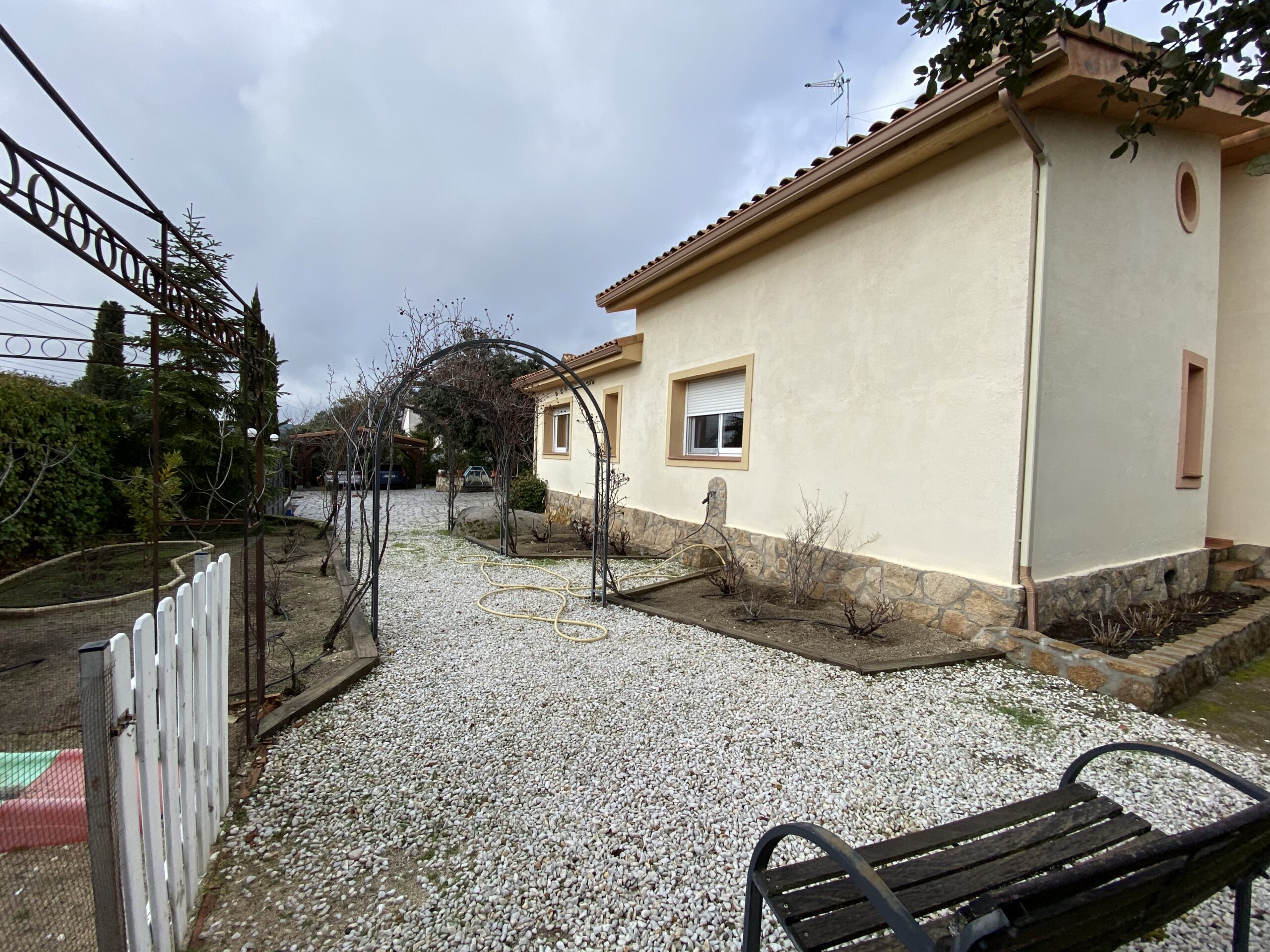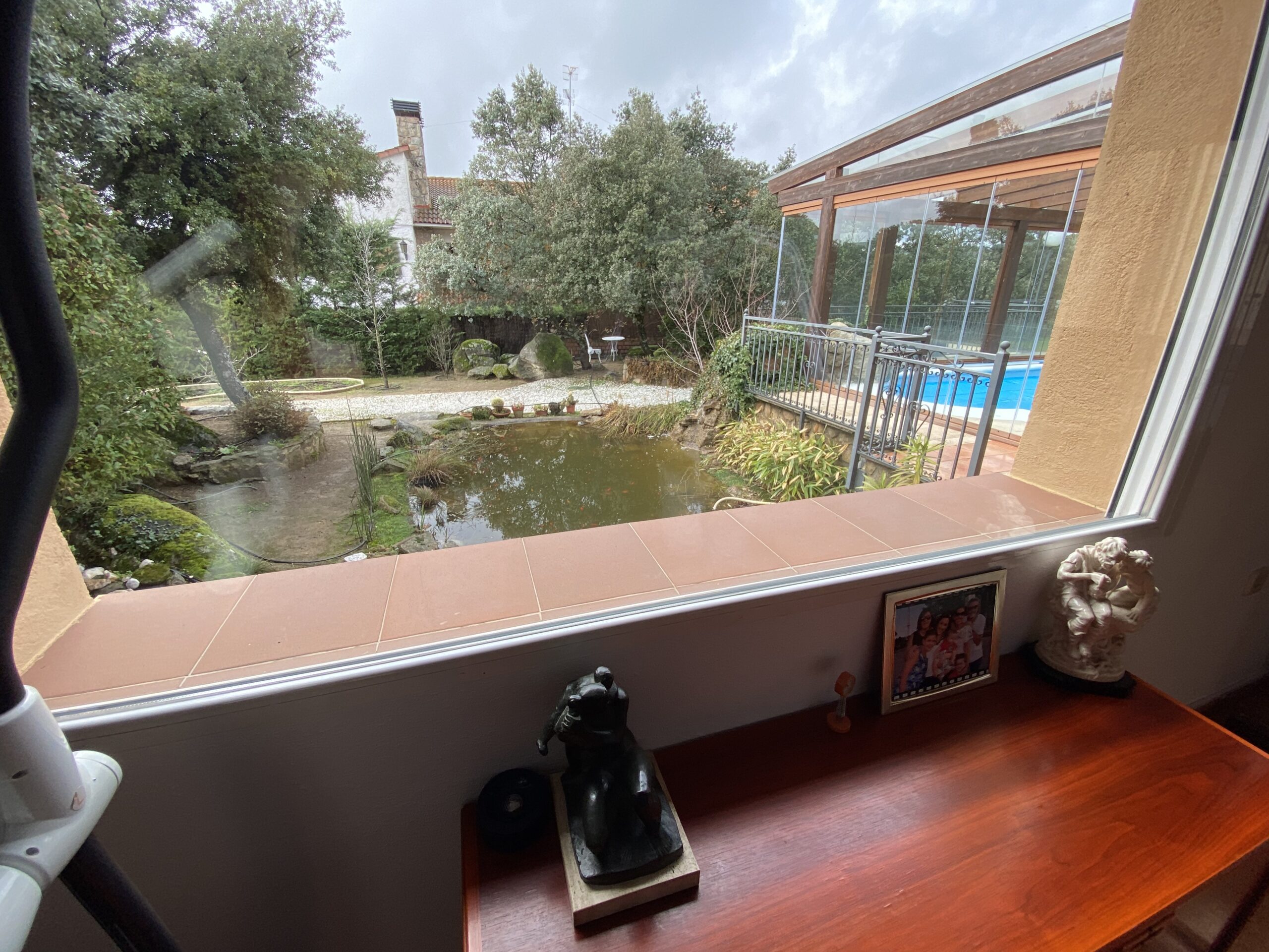 El impresionante jardín dispone de rosaleda con arcos, estanque con cascada y garaje cubierto para dos coches. Pozo de agua no potable ideal para regar las zonas verdes. Aire acondicionado en el salón y estudio.
