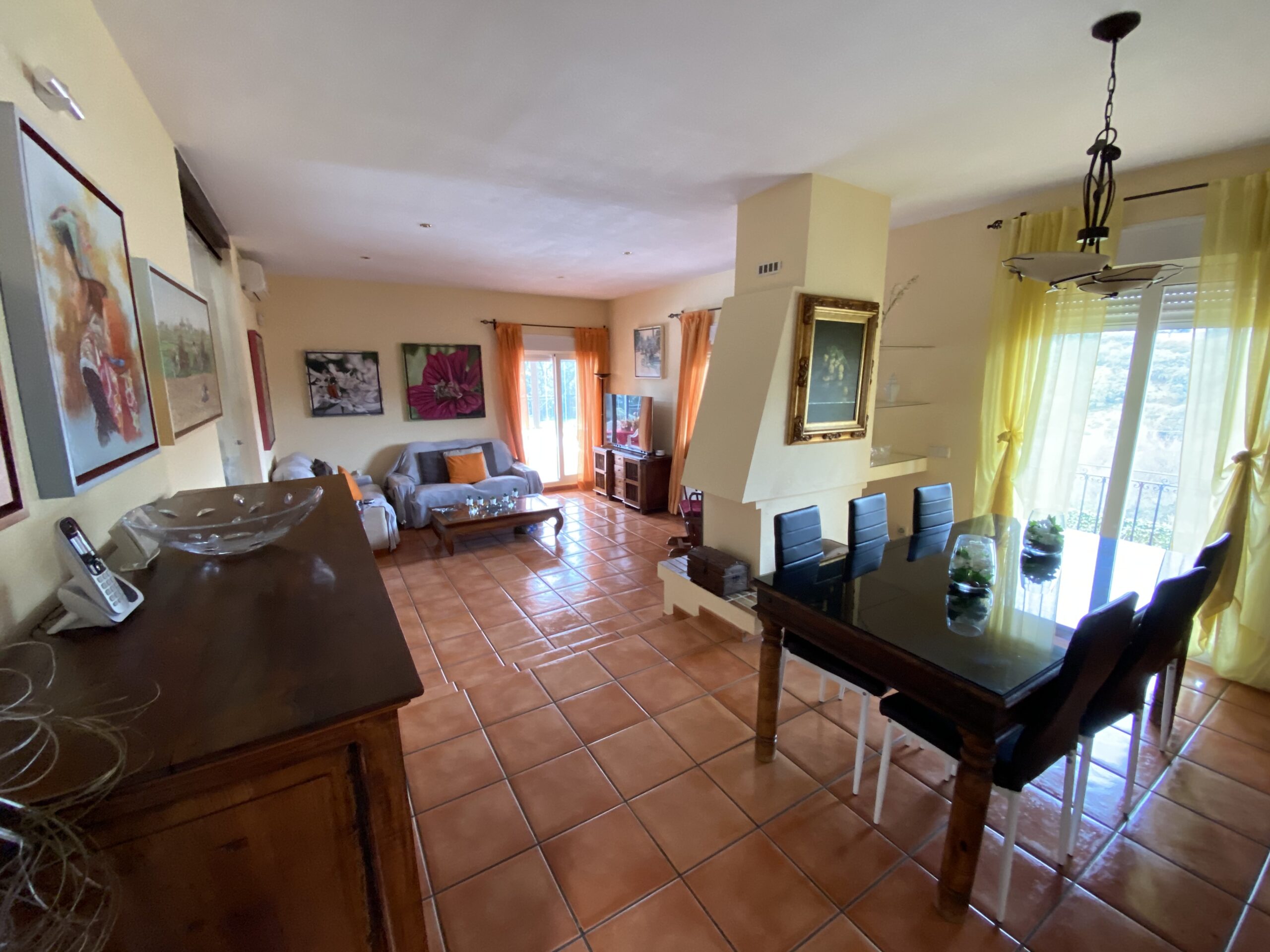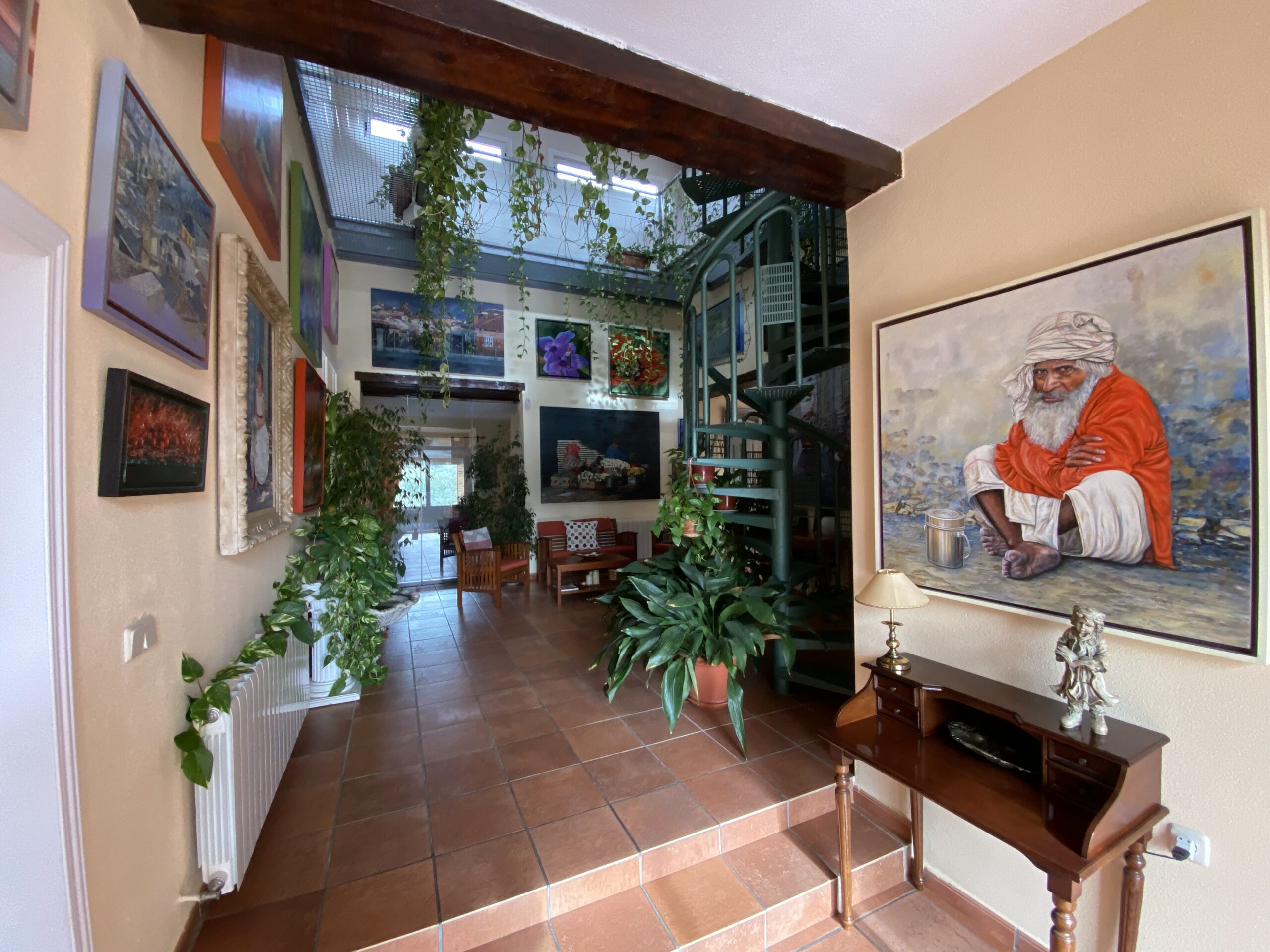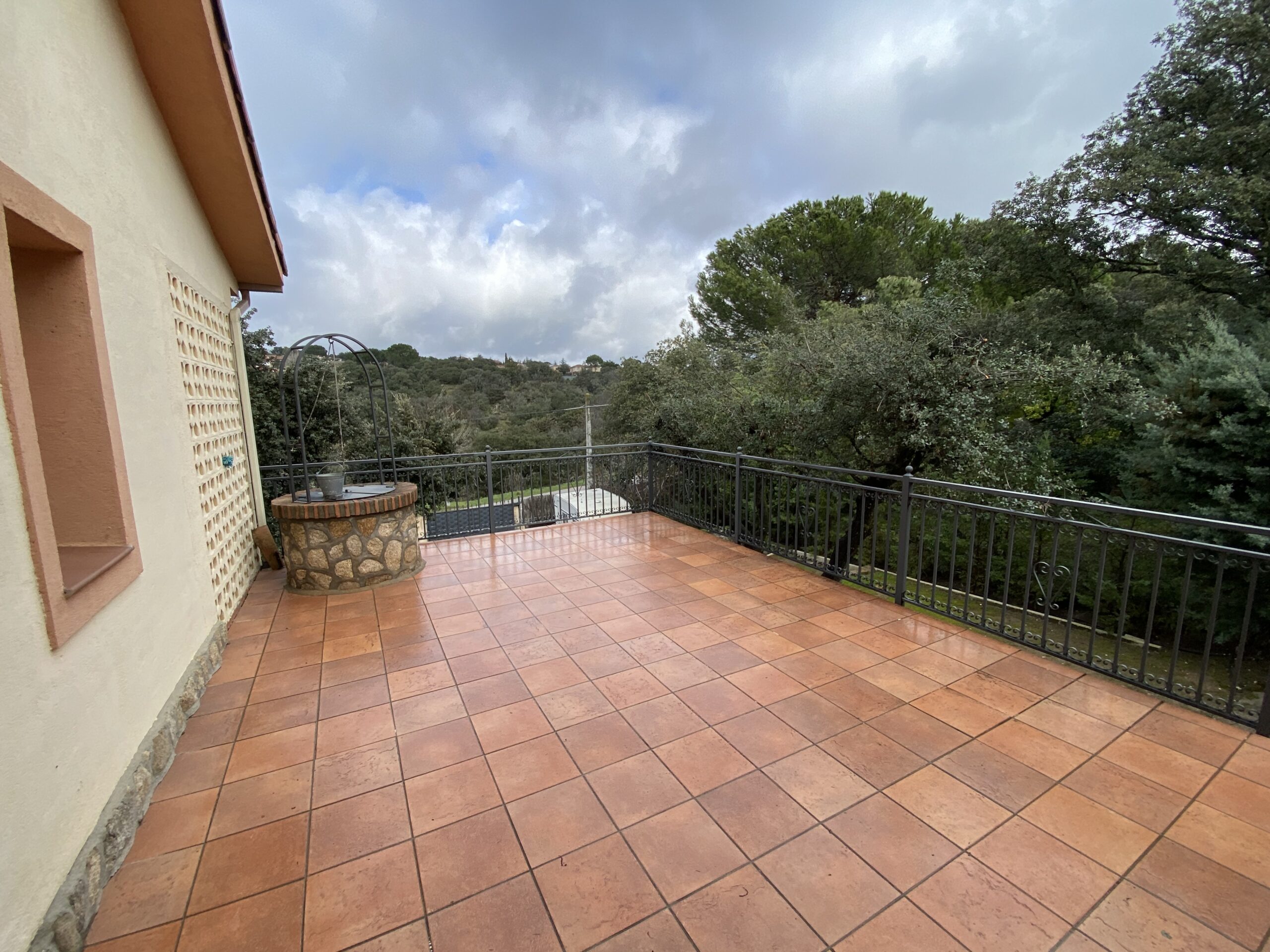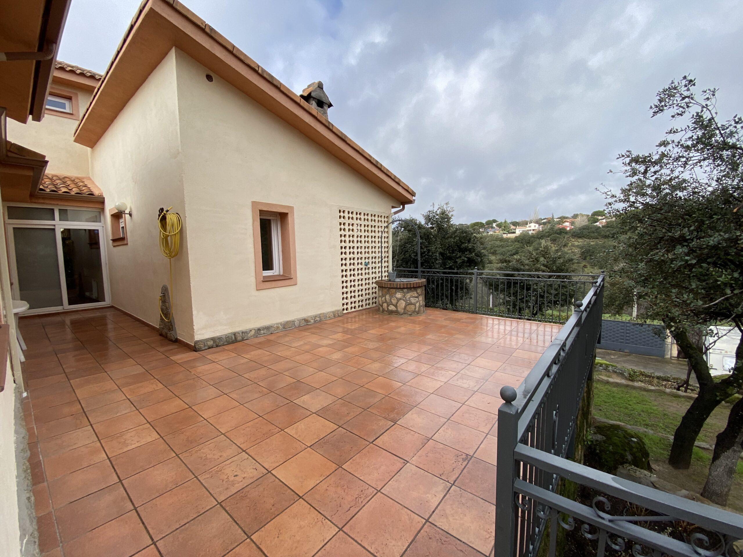 La propiedad tiene un gran recibidor y un patio cerrado de 46m2 y 6,5 metros de altura con una escalera de caracol para acceder a un mirador con vistas al pantano.