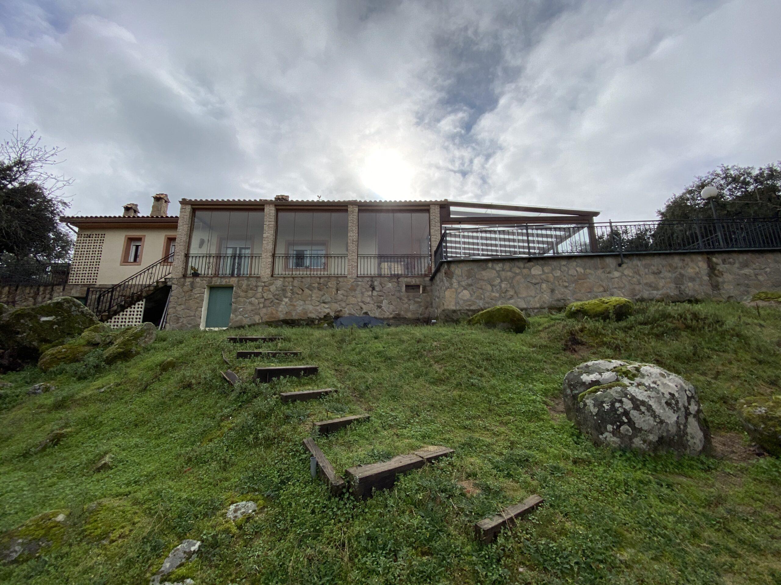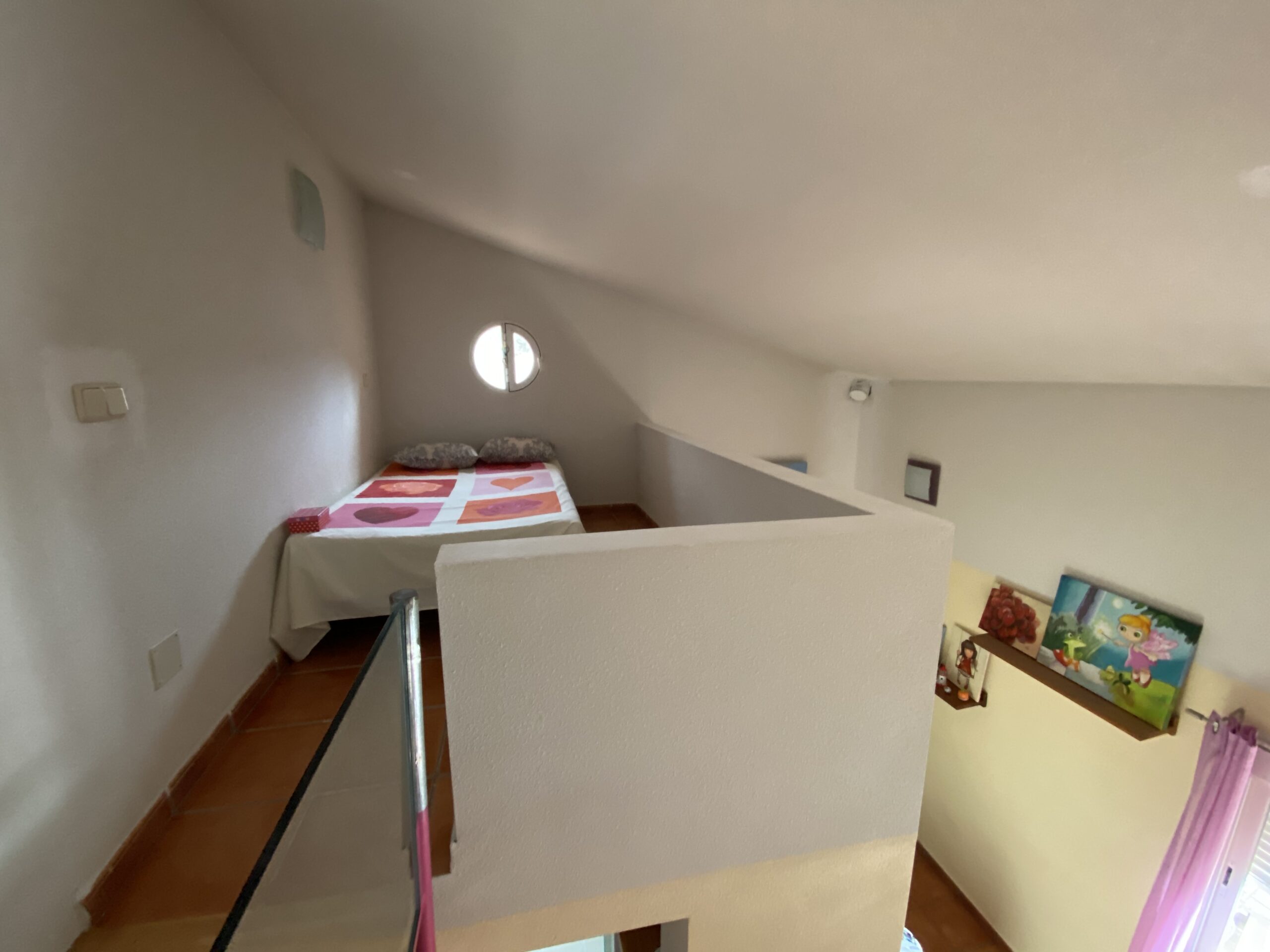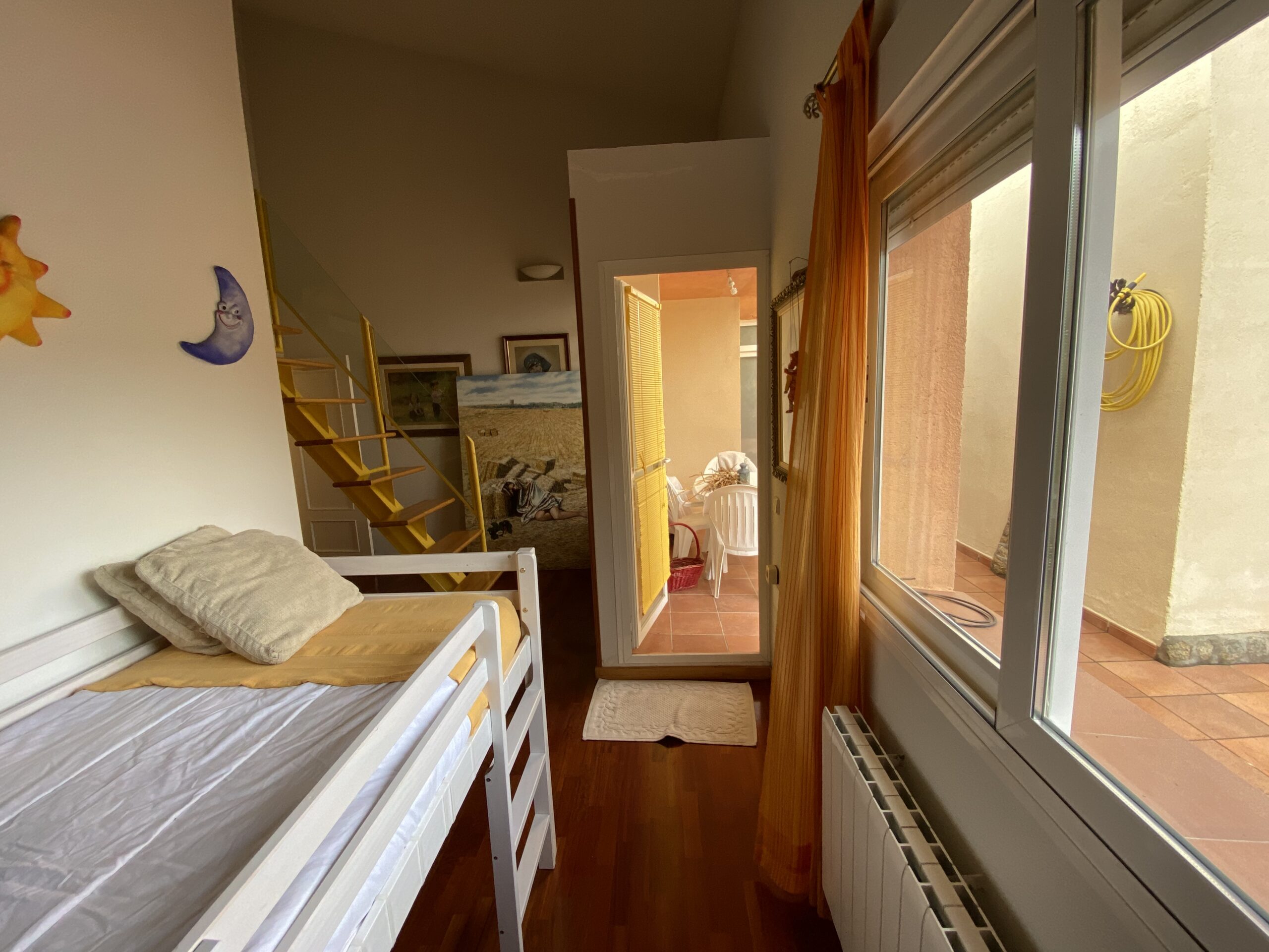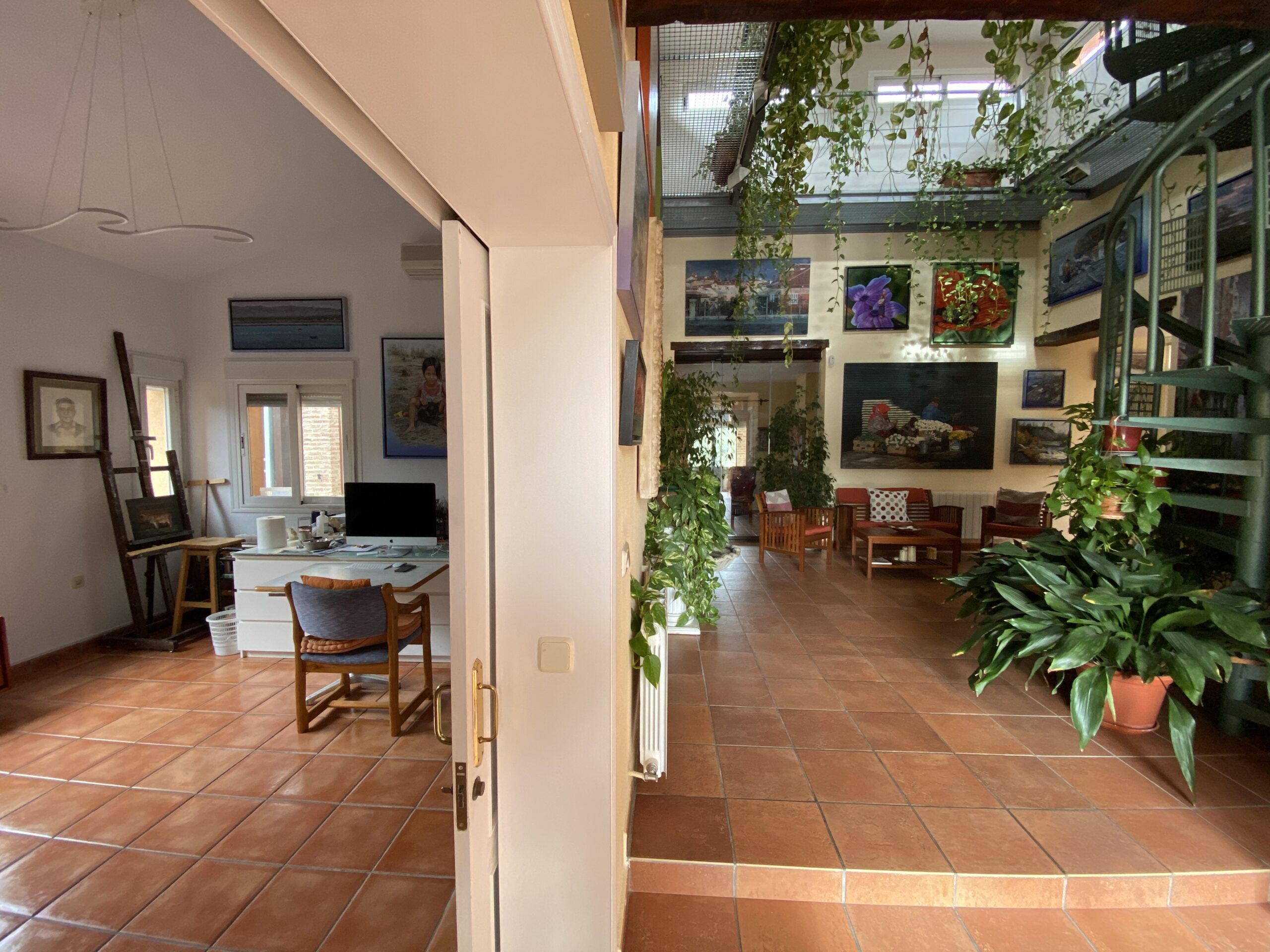 La propiedad tiene un gran recibidor y un patio cerrado de 46m2 y 6,5 metros de altura con una escalera de caracol para acceder a un mirador con vistas al pantano.